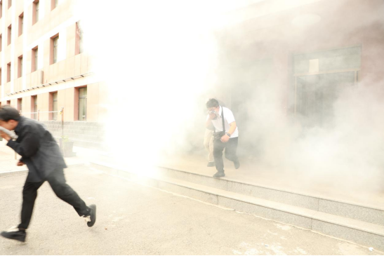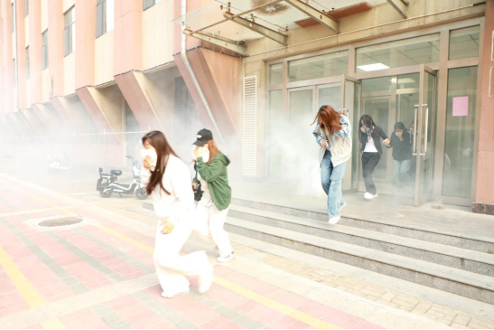 随着急促的消防警报声响起,应急疏散演练正式开始。模拟场景为1号、2号学生公寓楼“突发火灾”,各公寓宿管人员立即组织学生用湿毛巾捂住口鼻,弯腰低姿沿指定疏散路线快速移动,向楼外安全集结点疏散。