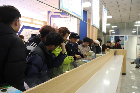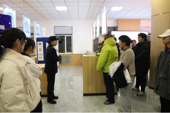 在警务室服务中心,民警现场演示了自助服务机的操作流程,详细介绍身份证办理、驾驶证体检等便民服务功能,并告知学生如果有需要直接来警务室进行办理。随后,民警还带领师生参观了调解中心,该中心为多部门协同化解校园矛盾纠纷提供平台。参观过程中,师生代表们踊跃提问,民警逐一耐心解答,并留下警务室联系电话,方便师生后续咨询求助。