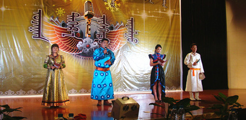 晚会首先由女子电声乐队的一曲激情四射的《吉他之歌》开场就立刻引爆全场气氛。苏日嘎等同学采用不同的组合形式,用饱含深情的诗歌展示了语言和声音的魅力。散萨日等同学表演的蒙古贝尔格舞蹈以其新颖的表演创意、独特的民族风情以及洋溢的青春味道赢得了观众阵阵掌声。红格尔珠拉等近20名同学的民族服装展示流光溢彩,给大家带来了民族与时尚元素融合的视觉冲击。女生萨克斯独奏《暗香》、幽默风趣的老人情景舞蹈、寓意深刻的小品《录取主持人》等节目也都一一成为晚会的亮点。现场掌声和欢呼声不断,演员和观众都沉浸在一片欢乐的海洋之中。