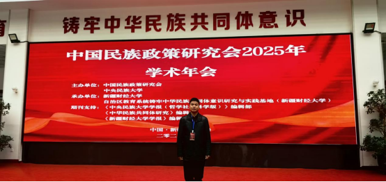 2025年10月10日-12日,中国民族政策研究会2025年学术年会在新疆财经大学阿勒泰校区举办。法学院副院长、内蒙古民族事务治理法治化研究创新团队负责人白木仁副教授受邀参加本次年会并在第四分论坛作了题为“新时代内蒙古民族事务立法的政策指引、实践成就与经验启示”的专题报告。