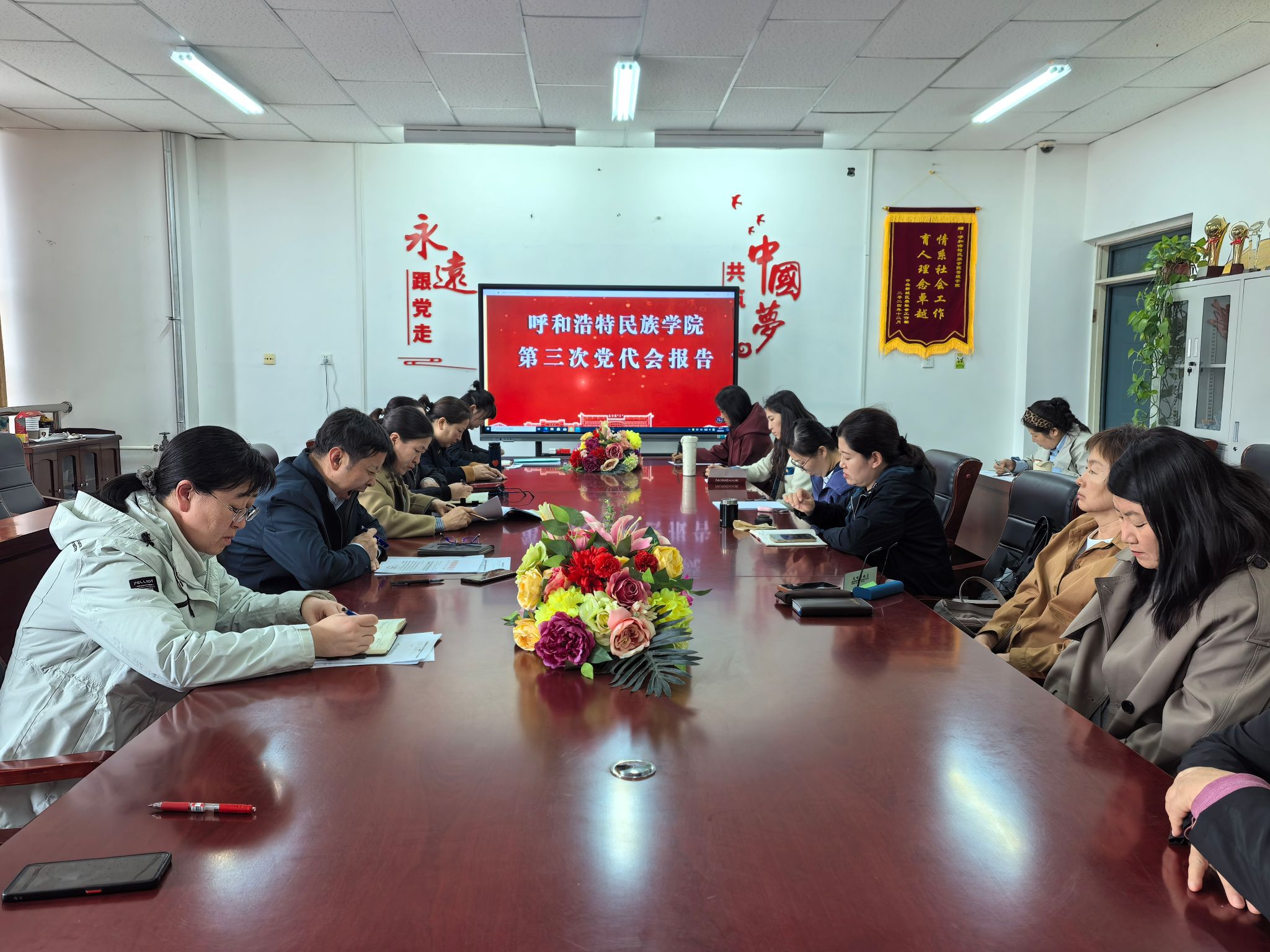 会议重点学习了《扎根北疆、铸魂育人,奋力谱写新时代应用型民族院校高质量发展新篇章》的大会报告。党总支书记详细解读了学校“转型强基、重点突破、跨越发展”三步走战略部署,以及凝心铸魂领航工程、立德树人固本工程等“七大工程”核心任务,并结合学院实际,对贯彻落实党代会精神、完成重点任务提出了明确要求与具体部署。