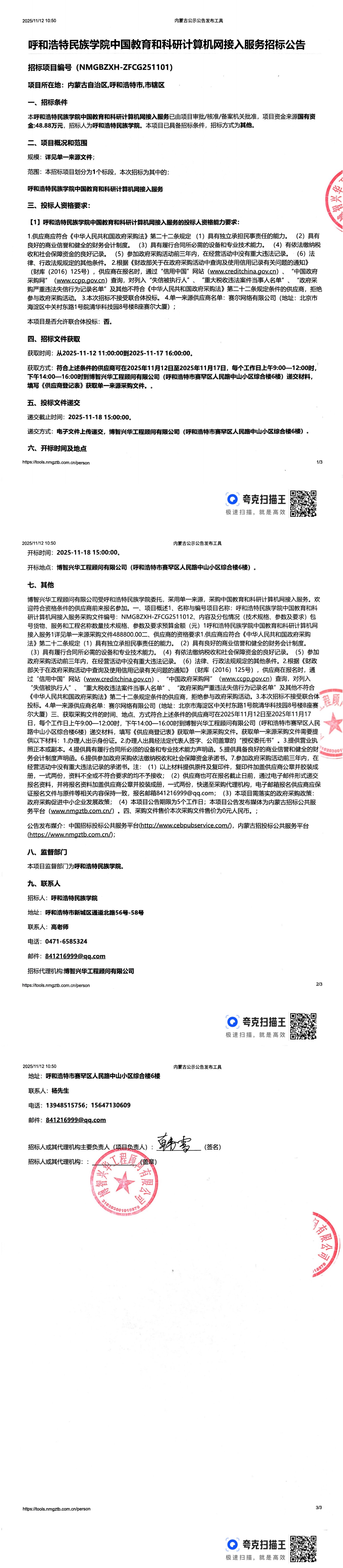 呼和浩特民族学院中国教育和科研计算机网接入服务招标公告