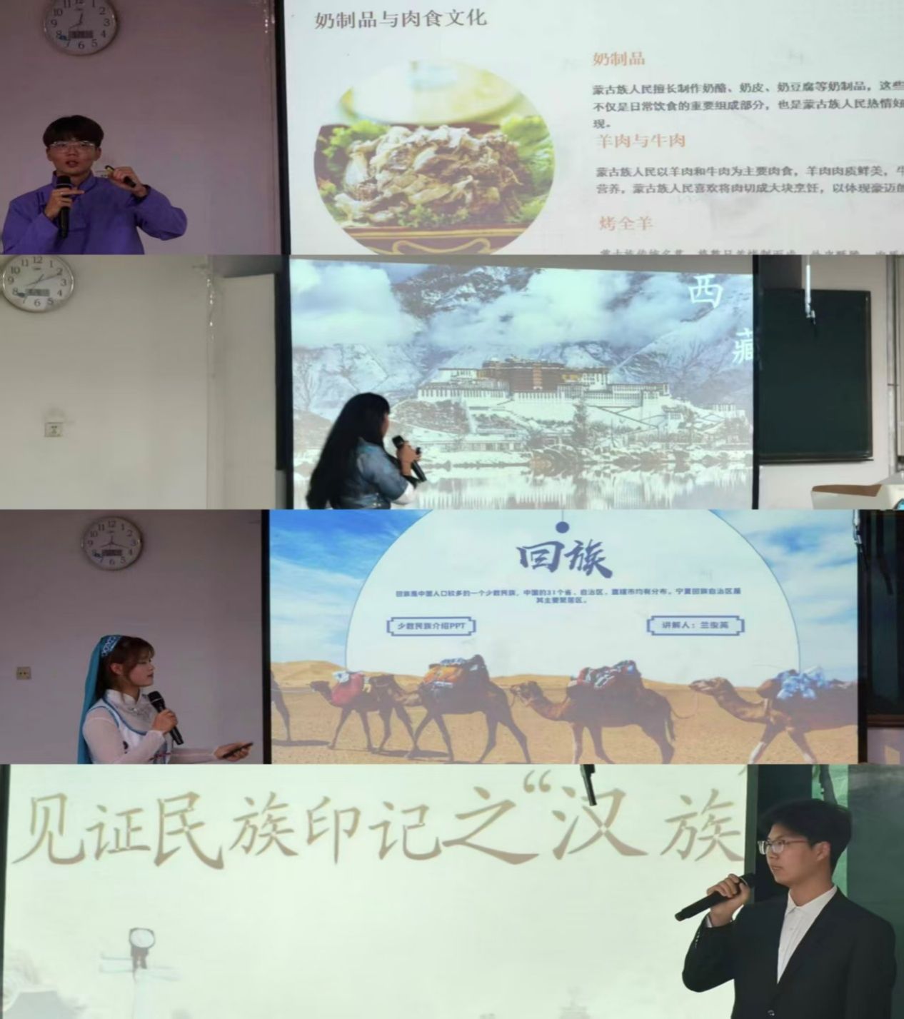 活动现场,汉族、蒙古族、回族、藏族四位学生代表分享本民族文化传承、传统习俗与特色美食,浓郁的民族风情让同学们领略到中华民族大家庭的多元魅力,厚植文化自信与民族自豪感,凝聚“各民族像石榴籽一样紧紧相拥”的共识。