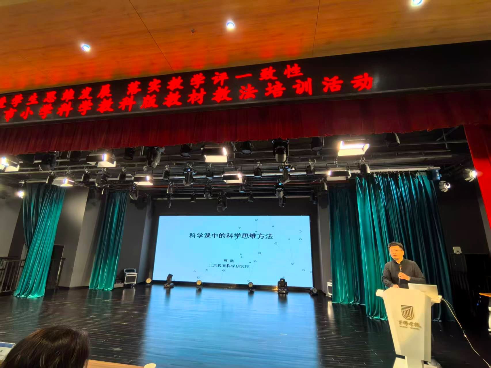 培训中,北京教育科学研究院基础教育教学研究中心科学教研室主任、教科版小学科学教材编写组成员贾欣老师作《科学课中的科学思维方法》专题报告,随后,师生们共同旁听学习呼和浩特市赛罕区万锦学校牛晓宇老师和北京市科学教师赵老师“同课异构”教学展示活动——《水珠从哪里来》课例展示。