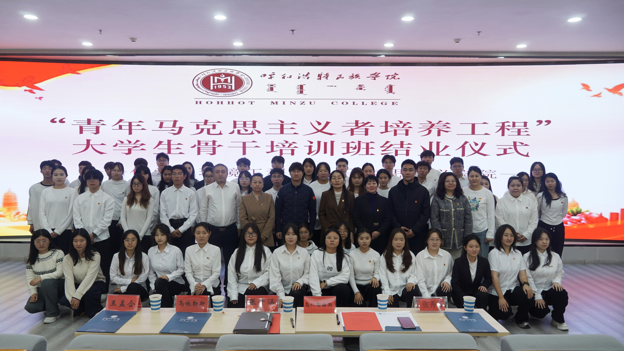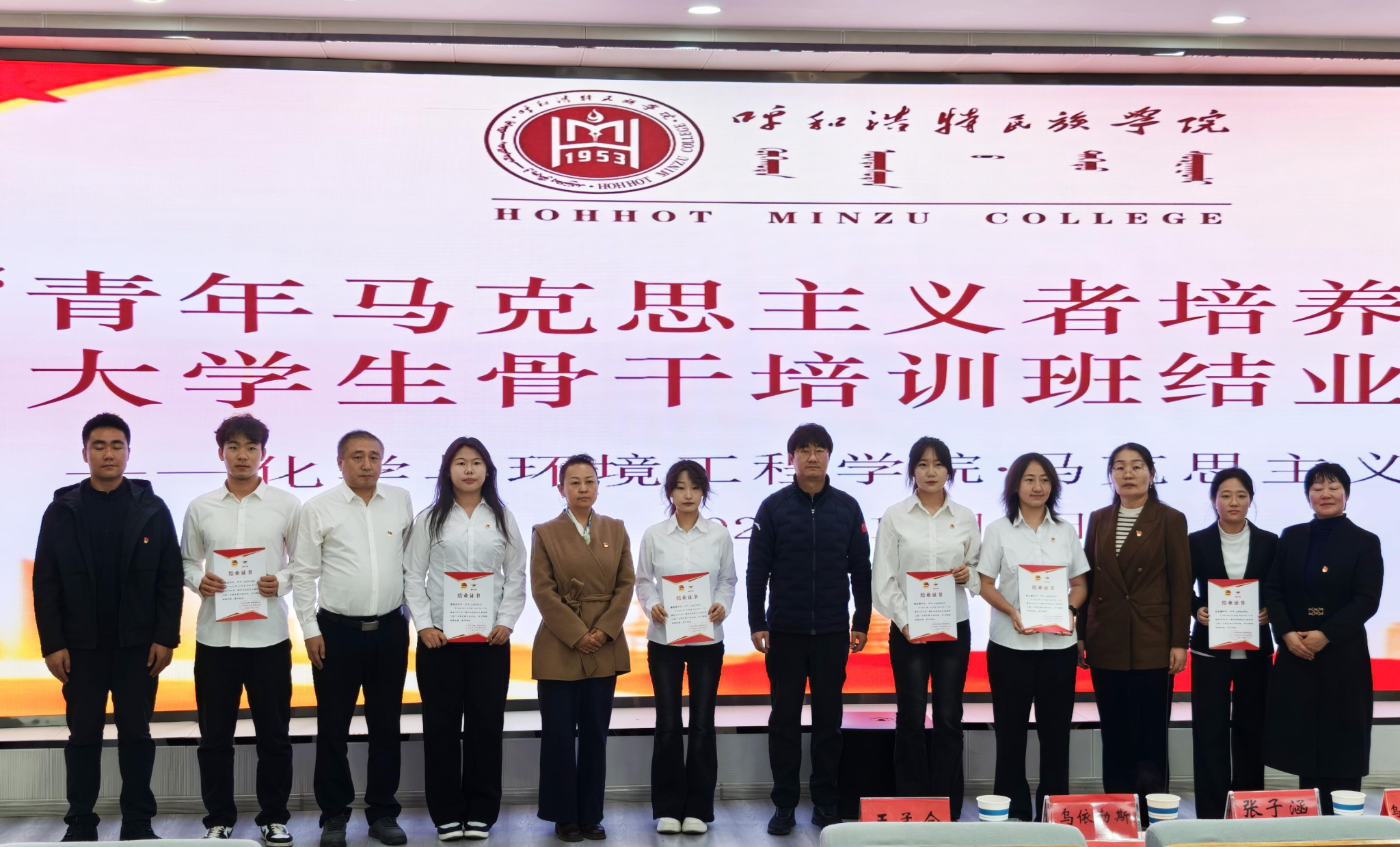 11月5日,在铸牢中华民族共同体意识教育馆一楼报告厅举行2025年“青年马克思主义者培养工程”大学生骨干培训班结业仪式。呼和浩特民族学院团委书记张子涵、呼和浩特民族学院团委副书记乌依勒斯、化学与环境工程学院党总支副书记乌仁陶格斯、马克思主义学院党总支副书记王孟合、马克思主义学院副院长张秀芬、呼和浩特民族学院团委组织部青合乐老师、化学与环境工程学院团总支书记瑙莫汗、马克思主义学院白宝花老师出席仪式,与青马班学员一起共同见证学员的成长。