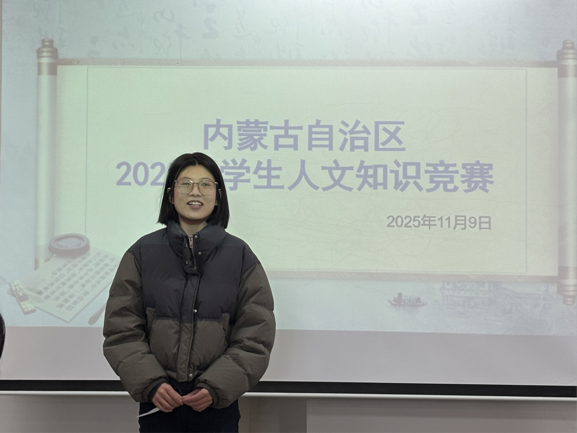2025年11月9日,内蒙古自治区大学生人文知识竞赛校级选拔赛在尚智楼顺利举行。本次竞赛由教务处主办、文学院承办,吸引了75名各学院学子同台竞技。比赛面试环节采用“即兴演讲”的形式,选手在一分半钟内完成主题构思与演讲呈现,既考验人文知识积累与语言表达能力,又注重临场应变潜力。经过激烈角逐,最终边文卓、王馨蕊、张娜斩获一等奖;刘庭炜、宋鲁豫、袁静慧、赵今仪、王淑媛荣获二等奖;张欣然、曹凯威、哈林、刘天维、薜茹亮、张慧紫、马明辉获得三等奖,15位同学将代表学校参加自治区决赛。