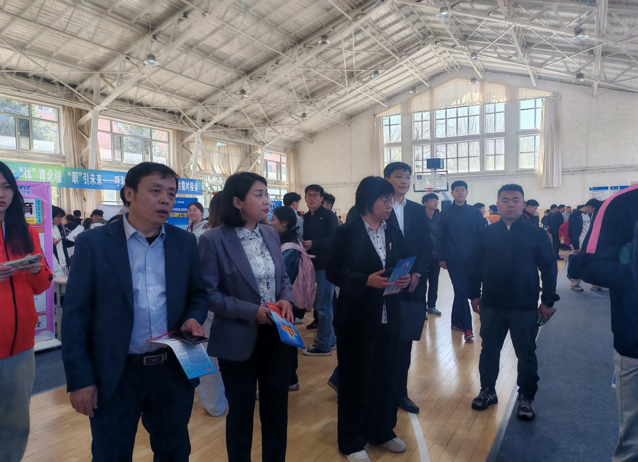 4月25日,“体育北疆 职引未来”呼和浩特市体育类人才专场供需对接会在内蒙古师范大学赛罕校区球类馆举行。校党委副书记格根哈斯带队参加对接会。体育学院班子成员及2025届全体毕业生参会。