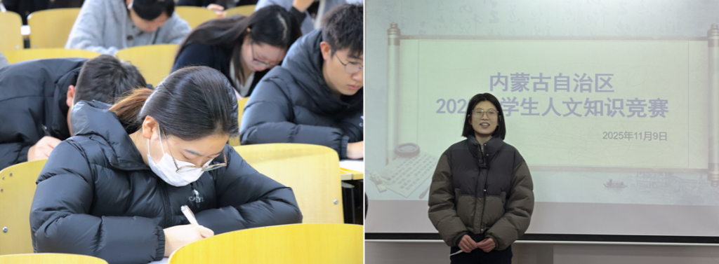 11月9日,由我校教务处主办、文学院承办的内蒙古自治区2025年大学生人文知识竞赛校级选拔赛顺利举行。本次比赛由文学院王佳、李萨如拉、李雪宁三位老师担任指导教师,来自各学院的75位学子同台竞技。