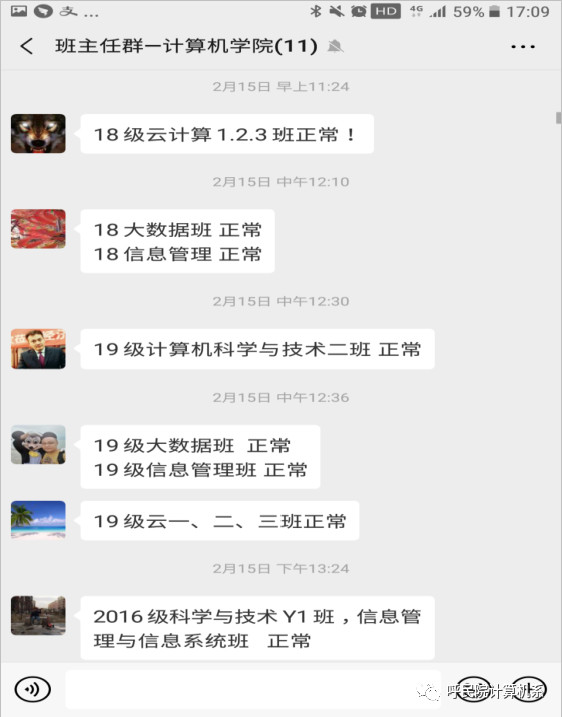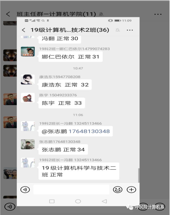 虽然放假了大家分布在全国、全区各地,但是防疫工作的车轮一直前进,计算机学院学生管理工作者、班主任辅导员及时把防疫工作要求传达到位,整理上报师生信息。我们严格遵守防疫期间各项措施要求,自觉进行健康“日报告”、“零报告”,用自律与全国人民共克难关。
