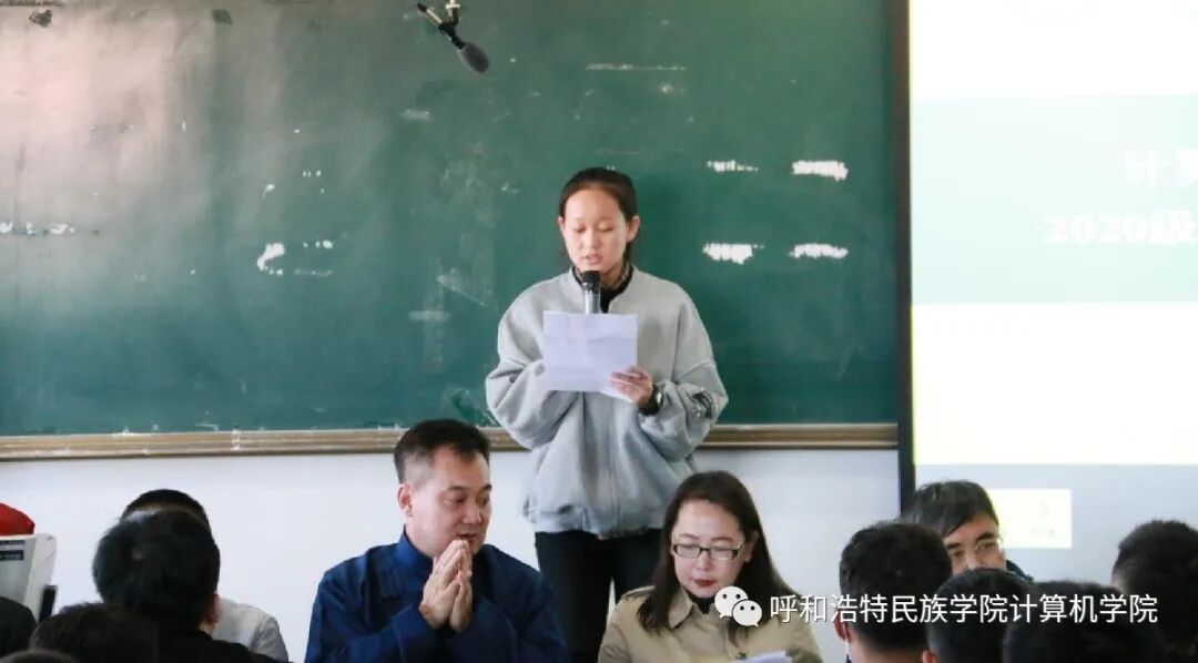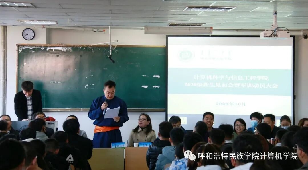 首先,北京东方智业内蒙古区域总监郭强;达内教育内蒙古基地呼和浩特民族学院驻校代表云诗仪女生;中软国际内蒙古区域总监宋红博依次发言,着重介绍了校企合作专业相关情况。紧接着,计算机学院党总支副书记赛希雅拉图布置了学院军训相关工作。其次,由2020级云计算2班新生代表刘宇欣同学发言,并带领全体新生郑重宣誓。最后,由计算机学院党总支雪梅书记总结发言。本次新生见面会暨军训动员大会圆满结束。