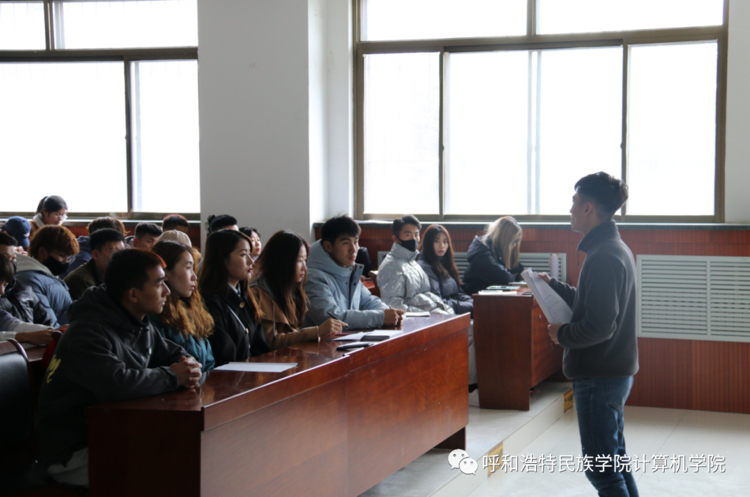 2020 年 11 月 23 日中午,计算机科学与信息工程学院共青团呼和浩特民族学院第二次代表大会选举正式代表大会在都林楼116圆满召开。此次会议由包巴雅力格老师主持,会议开始,依次介绍了 17 位候选人并详细的讲解本次会议的流程及选举办法。