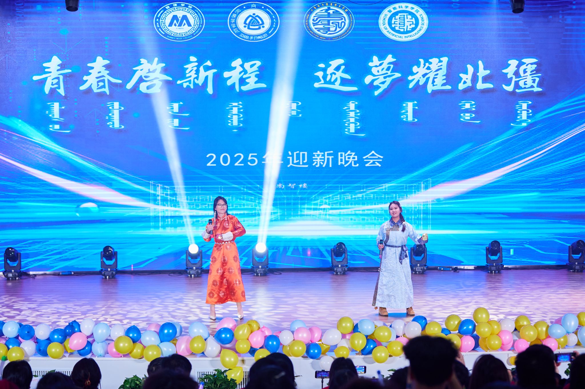 晚会以呼麦、马头琴《快语》和民族舞《草原晨牧》拉开帷幕。随后节目轮番登场,京剧《霸王别姬》的水袖翩跹,让新生领略传统文化的雅致;相声《听学长说》以幽默口吻拆解校园生活“通关秘籍”,引得全场捧腹;乐队演绎的《斑马 斑马》、歌伴舞《万丽》则将青春张力拉满,蒙语歌曲的婉转旋律与民族舞《宴歌》的欢快舞步,更让地域文化气息浸润每一处角落。