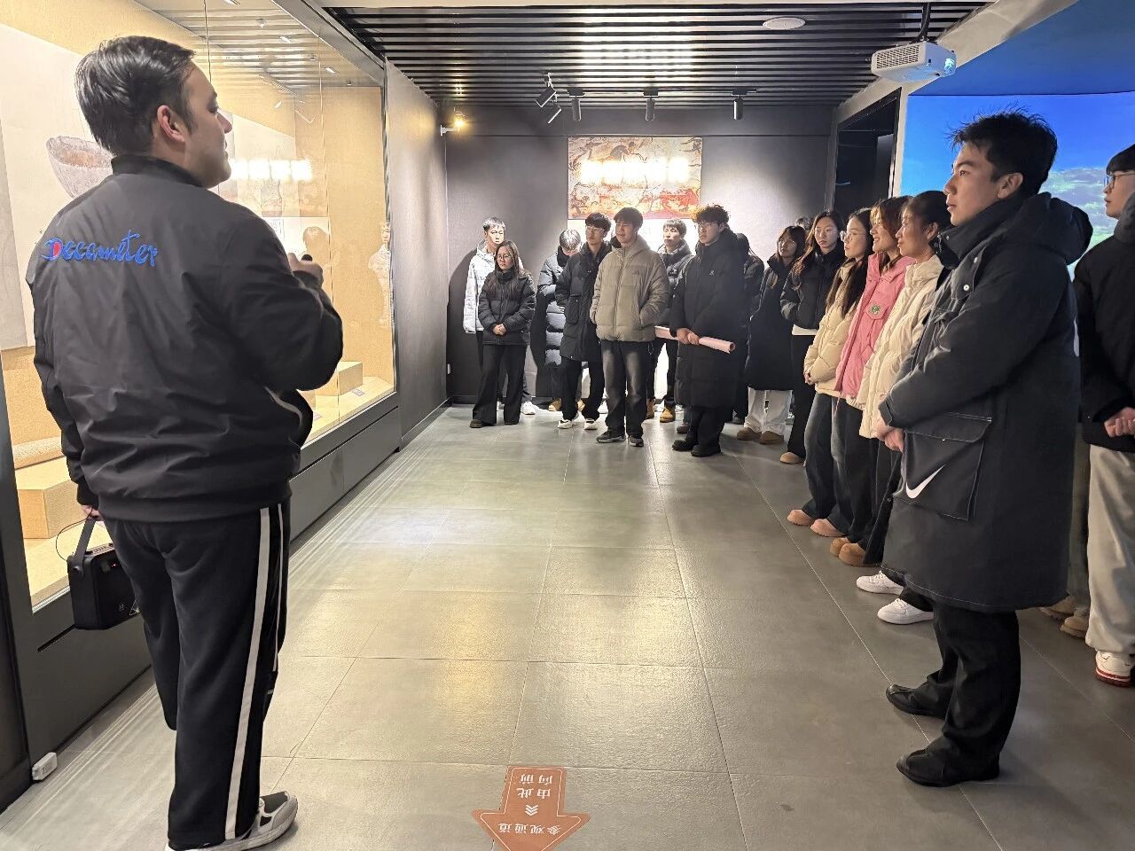 在博物馆讲解员的专业引导下,同学们依次参观了各个展厅。远古先民的石器工具,默默诉说着早期人类的生存智慧;鲜卑族的金饰、陶器与生活器具,生动再现了古代民族的生活风貌,将书本中抽象的民族融合历史变得鲜活可感;盛乐古城的复原场景、珍贵的壁画遗存,全方位展现了这座古城曾经的繁华盛景。