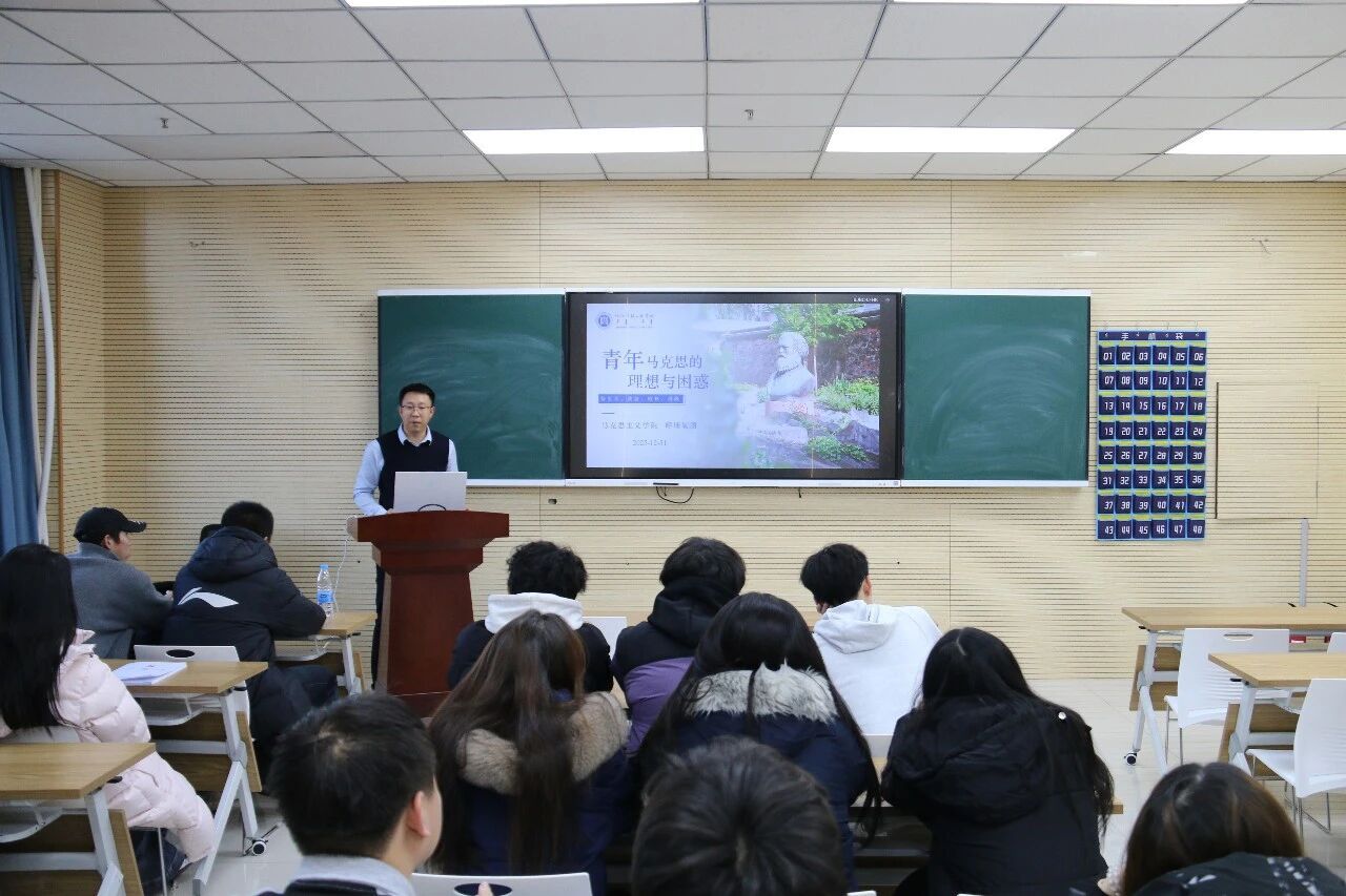 2025年12月31日计算机与信息技术学院邀请马克思主义学院思政课教师呼斯勒图以“青年马克思的理想与困惑”为题讲授主题党课。