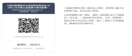 参训教师扫描下方二维码加入班级,点击进入观看直播。