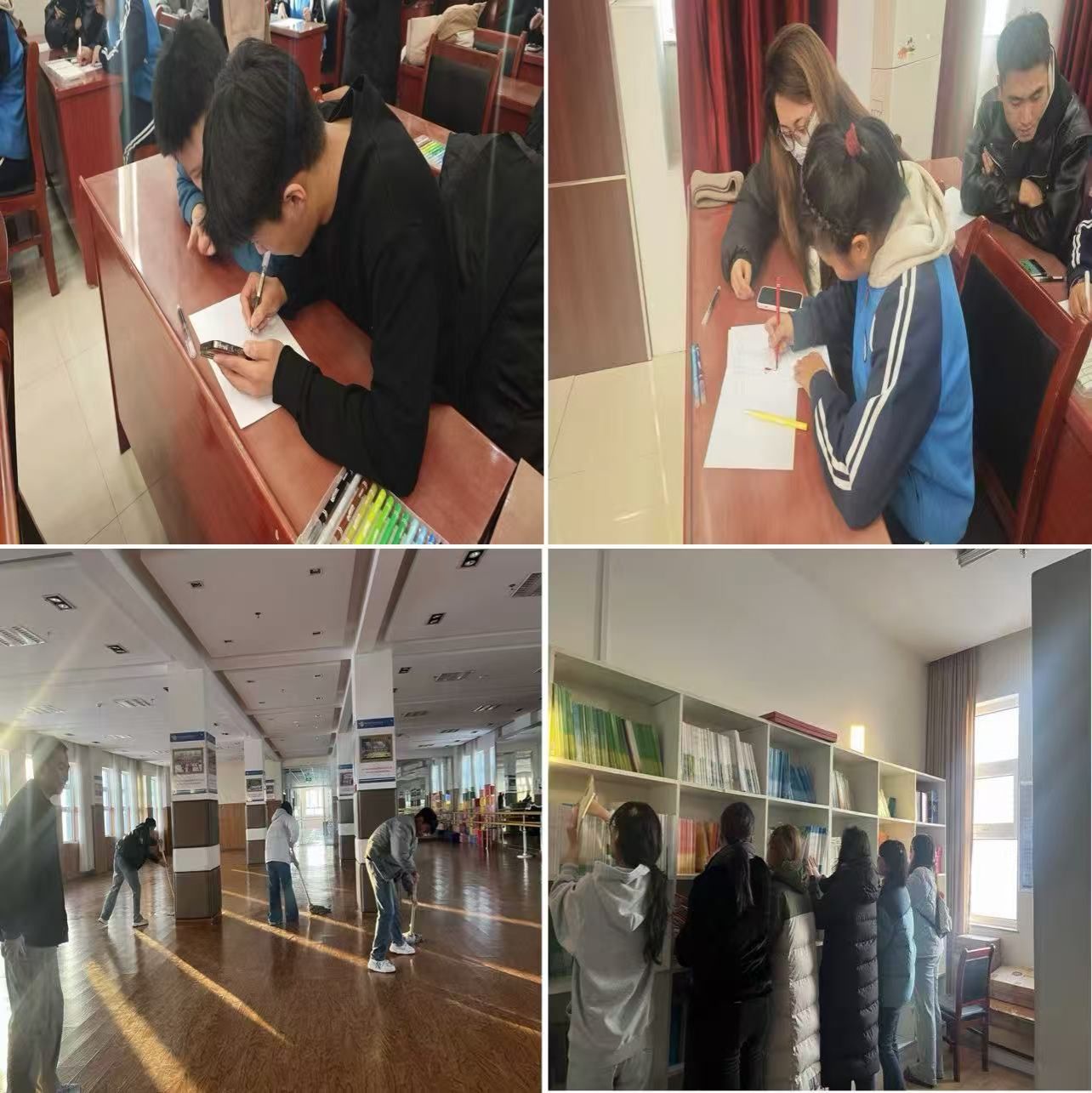 同学们还深入校园活动场地、图书室等区域开展环境整治志愿服务,为特殊儿童营造整洁舒适的环境。