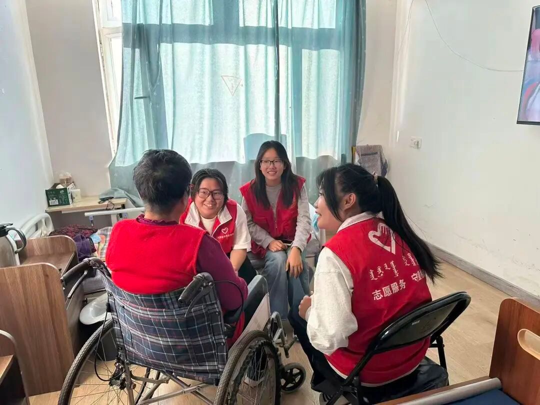 “岁月从不败温柔,陪伴最能暖人心”,这份对银发长辈的珍视,在11月1日午后的丽山湖老年公寓格外浓厚。阳光温柔地铺满庭院,将绿植叶片染得鲜亮,呼和浩特民族学院志愿服务队带着精心筹备的关怀走进这里,以“用陪伴传递温暖”为初衷开展志愿活动,用亲切的问候、专注的倾听,为老人们的周末时光添上了一抹暖心亮色。