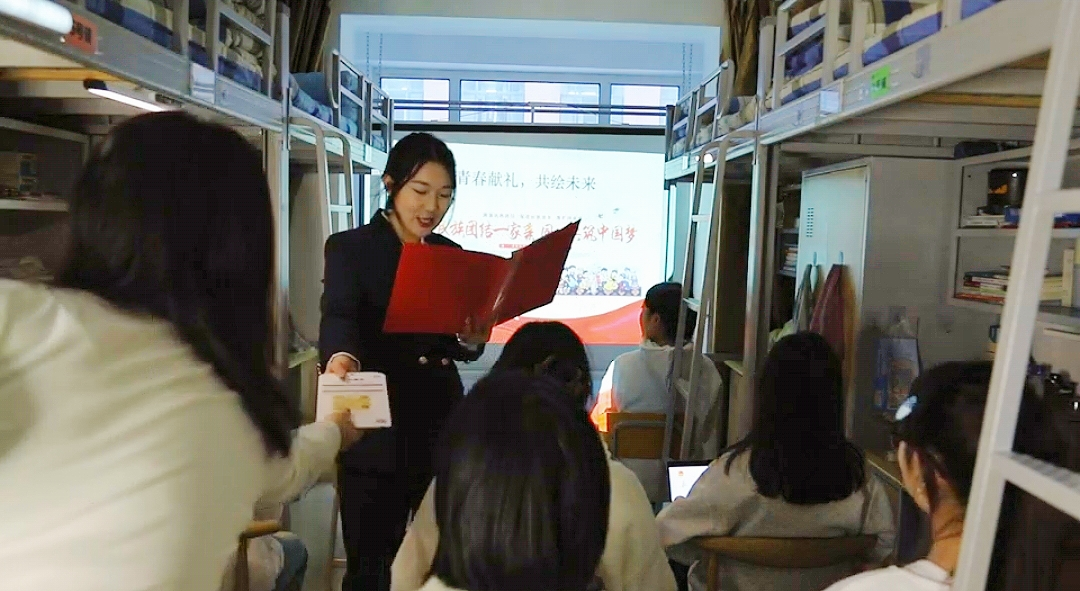 12月1日,共青团呼和浩特民族学院委员会组织石榴籽宣讲队走进3号公寓125宿舍,以“全会精神我来讲”为主题开展首场“宿舍微课堂”宣讲。10余名学生宣讲员用“小范围、面对面”互动模式解读党的二十届四中全会精神,让理论学习融入校园日常。