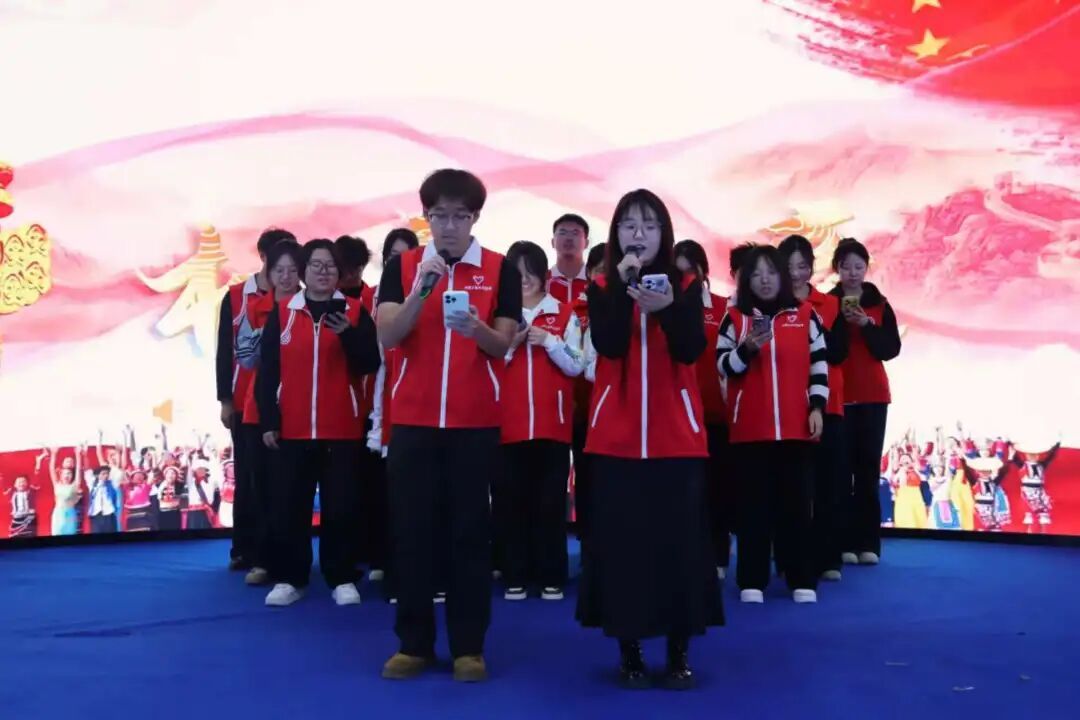 作为活动的核心参与队伍之一,呼和浩特民族学院青年学子携多元节目惊艳登场,为现场注入满满活力。大学生艺术团以灵动舞姿演绎《宴歌》,志愿者合唱《相亲相爱》传递温暖,朗诵《飘香北方》气贯长虹,歌曲《日不落》点燃青春朝气,最终以合唱《我爱你中国》抒发赤诚,将氛围推向高潮。