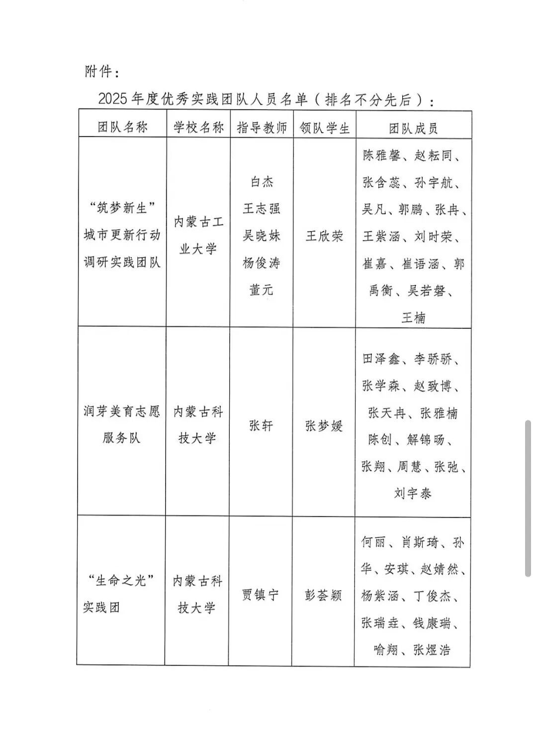 近日,我校“风歌羽影团”社会实践团队实践报告被共青团包头市委员会评为2025年全国大学生暑期文化科技卫生“三下乡”社会实践内蒙古“亮丽北疆·一城一榜”专项活动包头市优秀课题实践成果报告,彰显了我校学子在文化传承与社会实践领域的卓越风采。