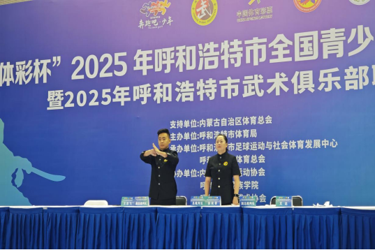 10月1日至3日,由内蒙古自治区体育总会支持,呼和浩特市体育局、呼和浩特市足球运动与社会体育发展中心、呼和浩特市体育总会联合主办,内蒙古武术运动协会、呼和浩特民族学院、呼和浩特市武术协会共同承办的“体彩杯”2025年呼和浩特市全国青少年武术套路邀请赛暨2025年呼和浩特市武术俱乐部联赛总决赛,在我校体育馆隆重举行。作为承办单位核心力量,体育学院全程统筹赛事组织、执裁与服务保障工作,以专业能力为赛事圆满落幕筑牢坚实支撑。