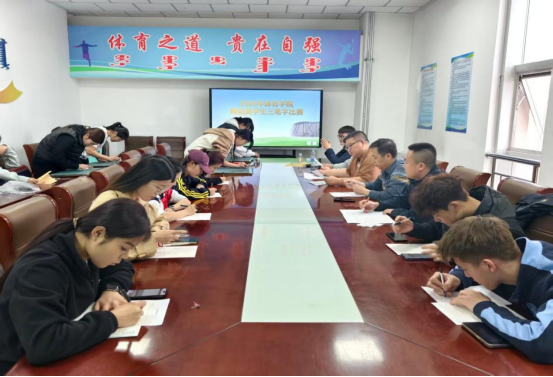 为夯实师范类学生专业基本功,提升教师职业技能,传承中华优秀传统文化,3月30日下午,体育学院2026年师范类学生三笔字比赛在体育馆三楼会议室圆满举办。本次比赛由学院主办,学工办、团总支承办。