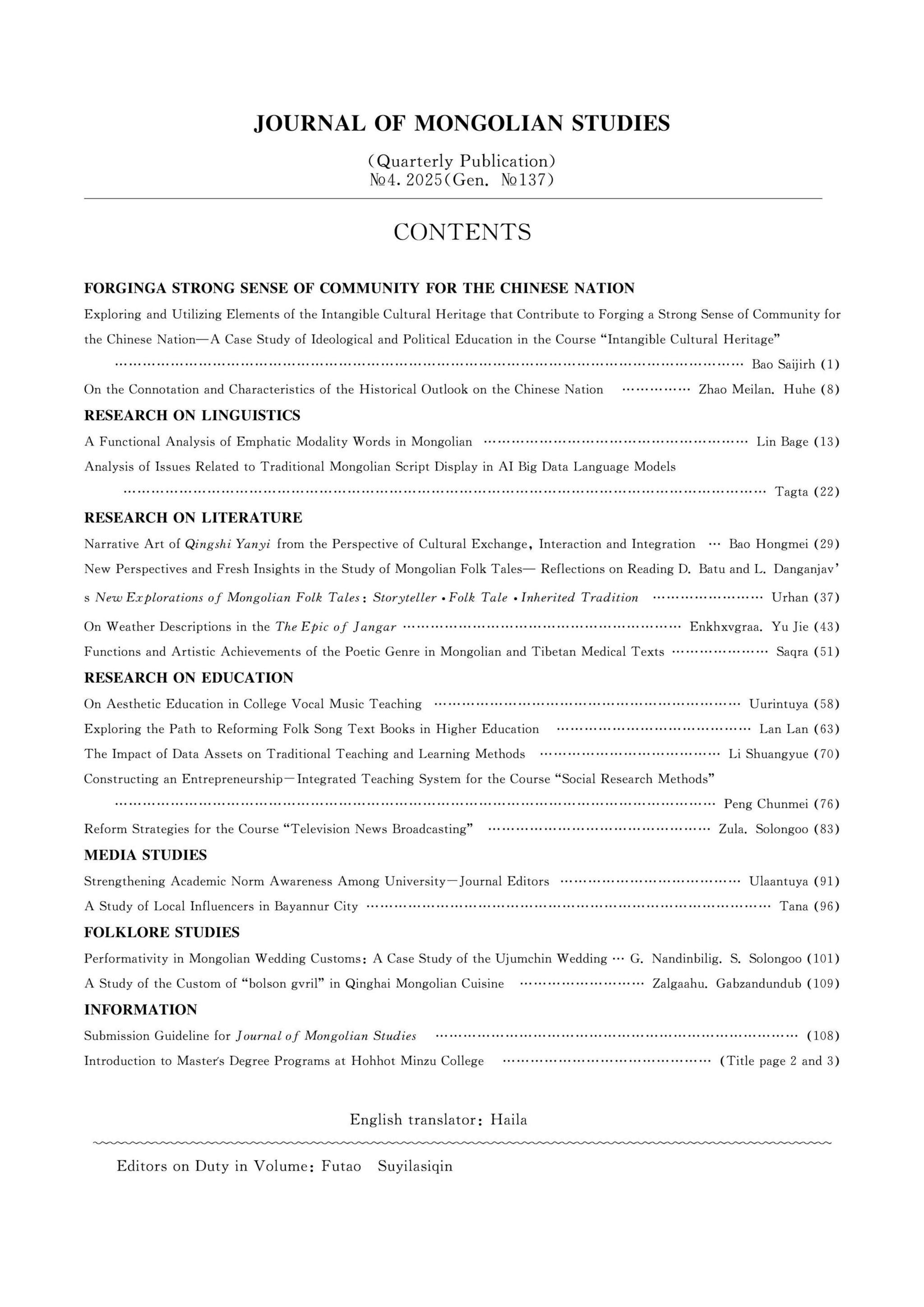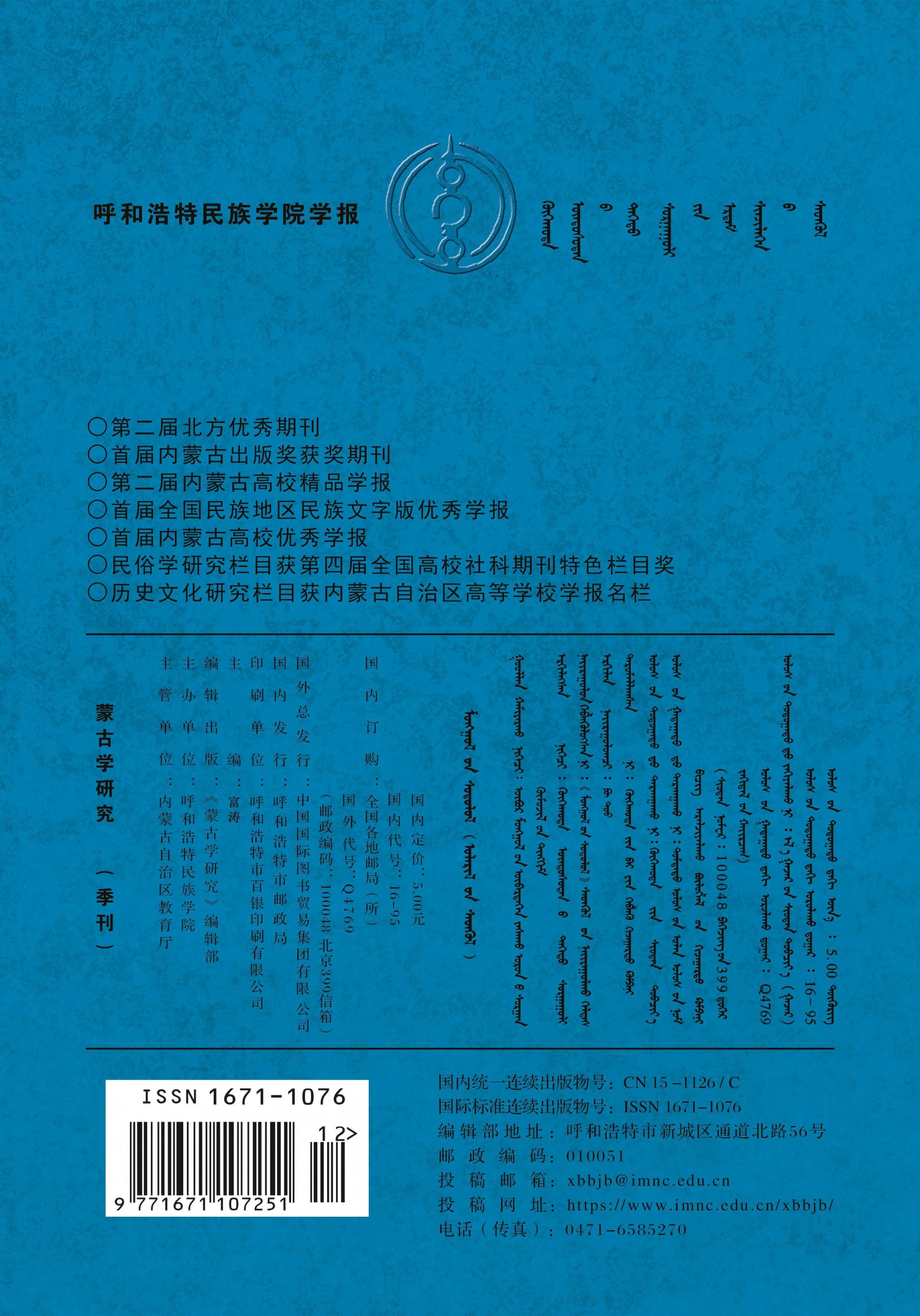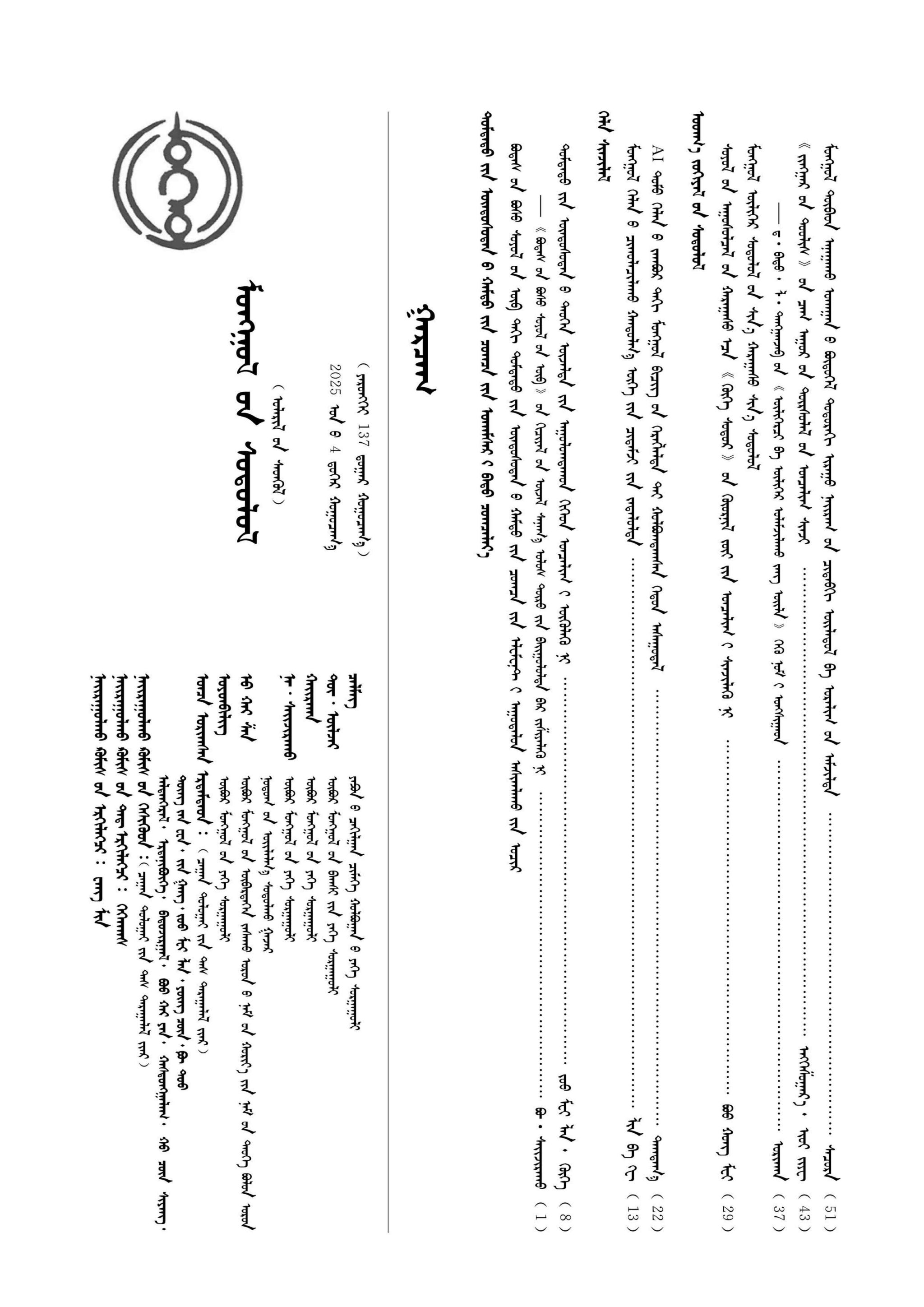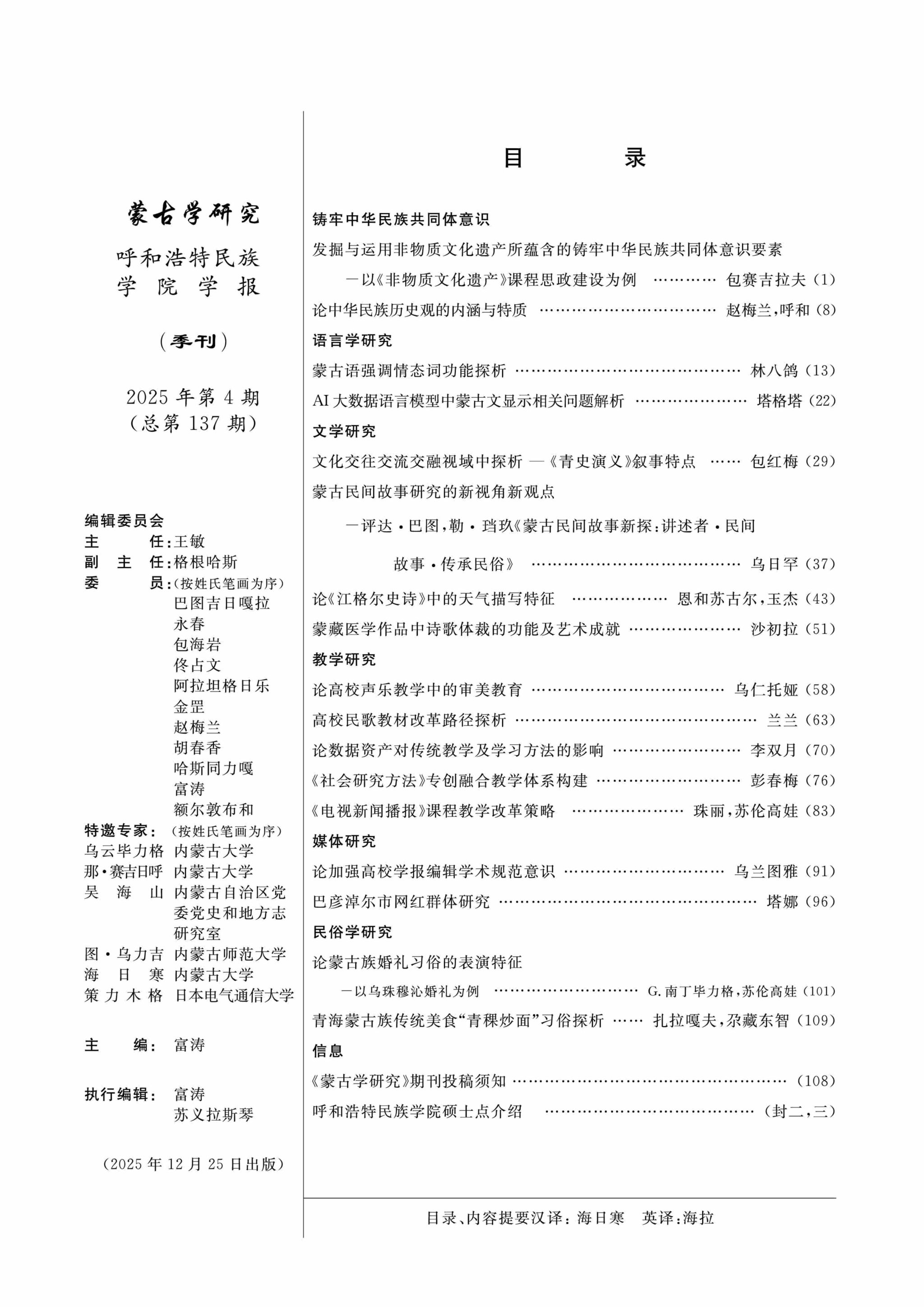 《蒙古学研究》2025年第4期封面及目录