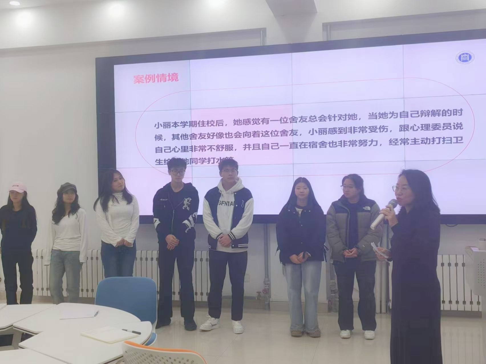 苏老师阐述了沟通中倾听环节的重要意义,详细讲解了如何进行有效倾听,强调心理委员在倾听过程中要秉持尊重、接纳、共情等专业态度,同时,着重强调了倾听中的关注点,如言语表达背后的情绪、潜在的心理需求等。苏老师以校园中常见的心理事件为实例,精心挑选具有代表性的生动案例,并融入实用的心理健康工作技巧,配合充满趣味的课堂互动活动,使心理委员们更加直观地理解并掌握了基本沟通艺术和倾听技巧。