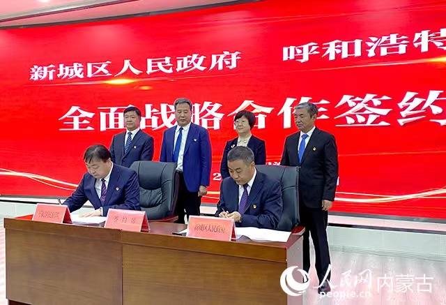 2022年5月27日上午,在我校图书馆一楼报告厅,新城区人民政府与我校签署全面战略合作框架协议。呼和浩特市委常委、组织部长商井民,呼和浩特市副市长晓芳,呼和浩特市教育局副局长陈长青,新城区区委书记赵永刚,区委副书记、区长殷树刚等呼和浩特市、新城区领导和相关部门负责人,学校党委书记格日乐图,党委副书记、校长乔彪,党委委员、副校长高喜天及相关部门负责人和二级学院代表参加签约仪式。签约仪式由高喜天主持。