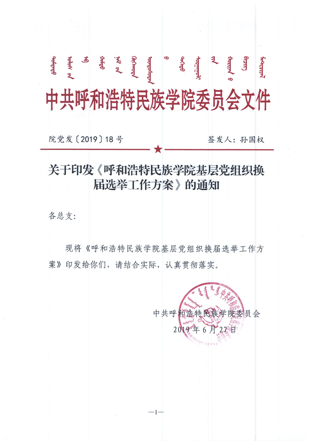 关于印发《呼和浩特民族学院基层党组织换届选举工作方案》的通知