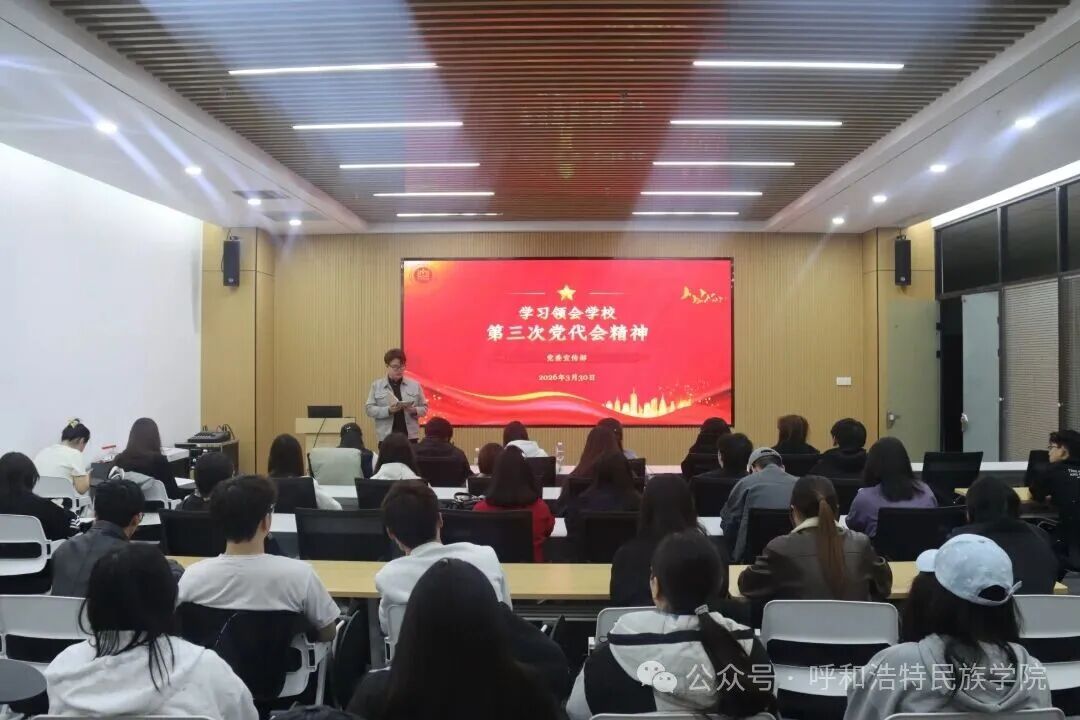 3月27日,中国共产党呼和浩特民族学院第三次党员代表大会在百年讲坛隆重开幕。本次党代会是在“十五五”规划开局起步、全面深化教育综合改革、加快推进教育强国强区建设的关键时期,在一体推进教育科技人才协同发展、持续深化学校应用型转型发展的关键阶段召开的一次十分重要的会议。学校统一战线第一时间组织传达,迅速掀起学习热潮,统战成员和统战干部围绕学习贯彻会议精神、发挥新时代统一战线法宝作用展开学习和热议。3月2...