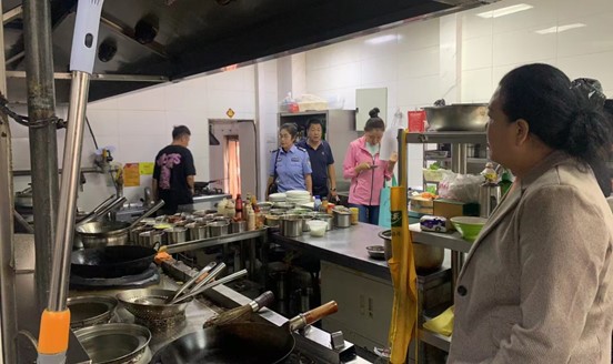 对校内及周边各营业网点食品安全、消防安全等方面进行了检查。检查组对部分商铺员工不会使用灭火器、灭火器缺少或过期、以及楼梯间通道缺少应急指示照明灯等问题立即提出了整改意见,并下发了整改通知书,要求限期整改。
