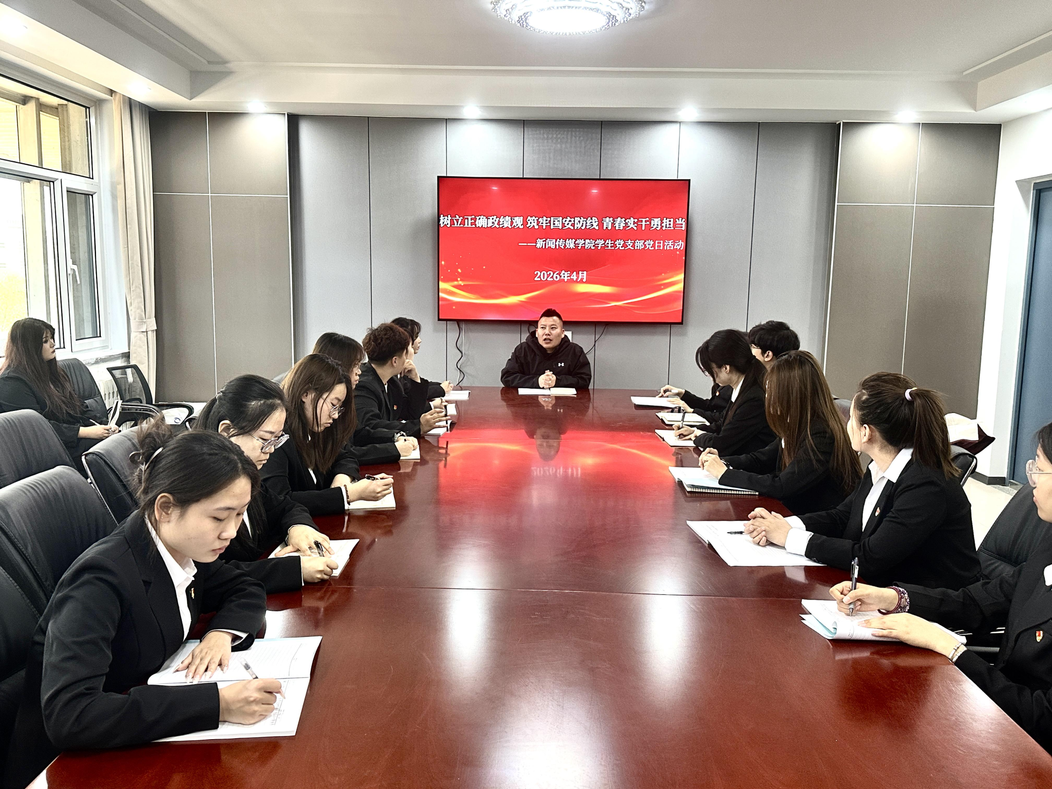 4月27日,新闻传媒学院学生党支部在都林楼519会议室召开“树立正确政绩观 砥砺奋进新征程”集体学习会。学生党支部书记斯日古冷主持会议,支部全体学生党员、入党积极分子共同参与学习。会上,斯日古冷主任围绕正确政绩观的核心内涵与实践要求进行领学,结合青年学生成长规律和新闻传媒专业特色,引导参会人员端正思想态度、坚定理想信念,自觉把个人成长与时代发展相结合,以务实作风提升自我、践行初心。参会人员认真聆听学...2026-04-28