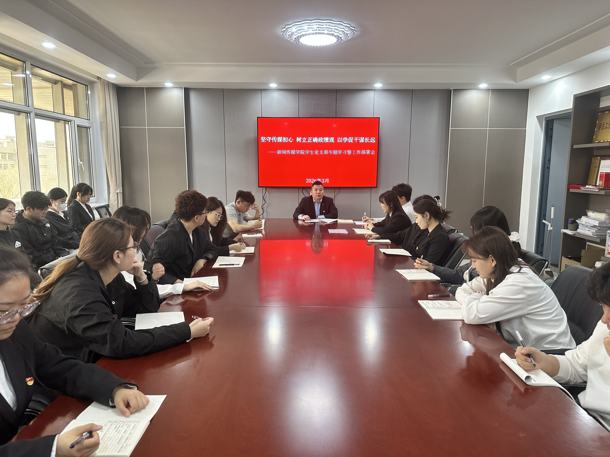 为强化青年党员思想引领,筑牢党性根基,3月30日,新闻传媒学院学生党支部举办树立和践行正确政绩观专题学习暨工作部署会,支部全体学生党员参会。