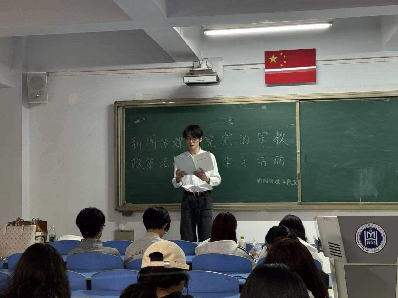 为深入响应国家关于宗教工作的决策部署,全面贯彻党的宗教工作基本方针,切实筑牢校园思想防线,2026年4月7日,新闻传媒学院在都林楼502教室组织开展党的宗教政策法规专题宣讲学习活动,学院60余名学生参加本次学习。