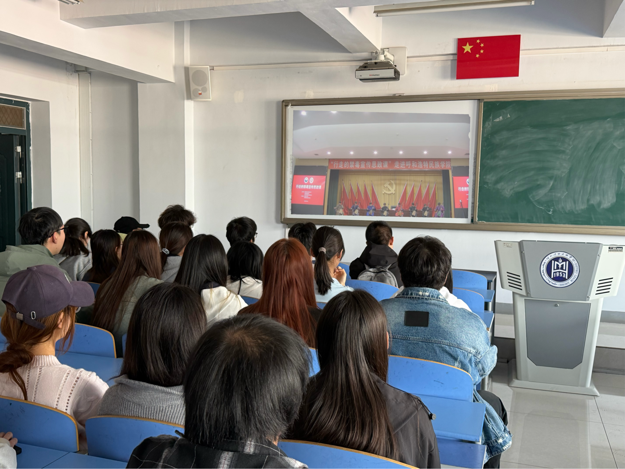 为进一步强化校园禁毒宣传教育,切实提升全院学生识毒、防毒、拒毒意识,引导广大青年学生自觉远离毒品侵害、筑牢身心健康防线,2026年4月16日,学校以百年讲坛为主会场,我院在都林楼505室设立分会场,同步开展禁毒教育专题讲座,我院共计100余名学生参加此次活动。