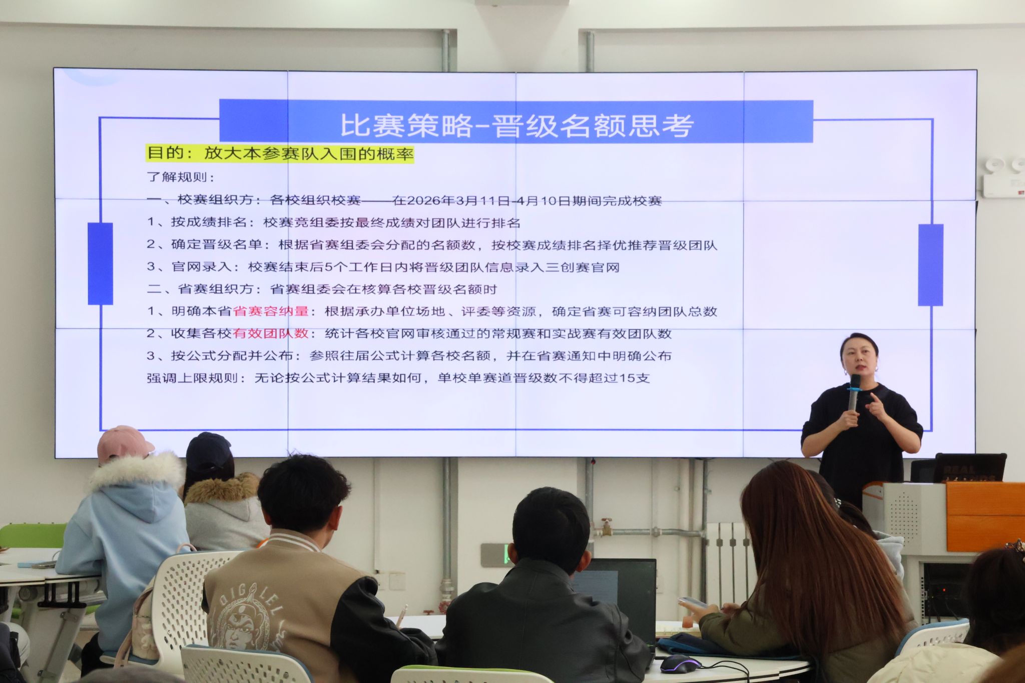 本次培训由内蒙古工业大学武敏老师主讲,围绕赛事规则、违规风险、备赛方法及实战赛道专项解析,重点解读了2026年赛制核心变化,包括实战赛赛道扩容、AI应用要求提升、落地数据权重增加等内容,并就报名流程、信息填报规范、团队组建策略等问题进行答疑指导。