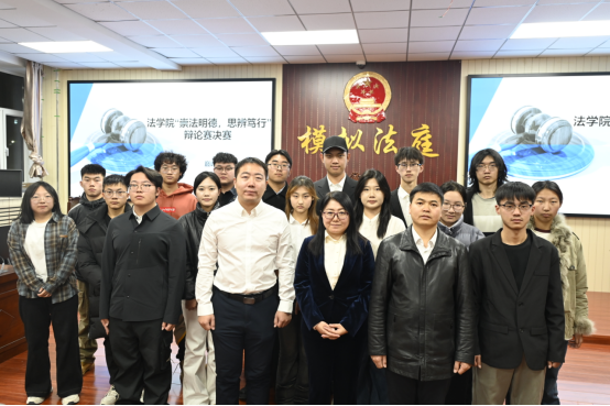 11月20日晚7点,法学院校园法治文化节系列活动之一--“崇法明德,思辨笃行”法律辩论赛决赛在都林楼模拟法庭正式开赛。经过初赛的激烈角逐,23级法学2班、25级法学1班、25级法学2班、25级法学3班四支队伍脱颖而出,携手晋级决赛。本次比赛由法学院党总支书记乌兰其其格、副书记姜鹏、副院长白木仁担任评委,50余名学生到场观赛,共同见证这场法理与思辨的精彩碰撞。