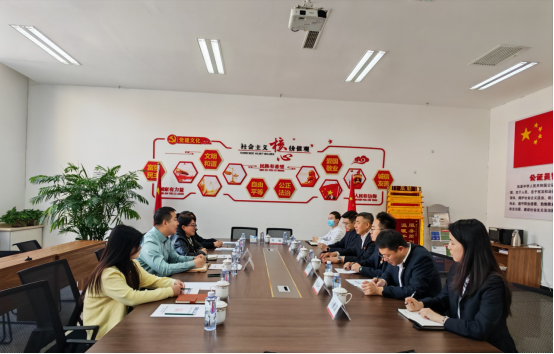 参观结束后,双方在会议室举行座谈交流。布和主任首先详细介绍了森和公证处的发展历程、队伍建设、业务开展及人才需求等情况,重点阐述了公证处在创新服务模式、拓展服务领域等方面的实践成果,同时表达了与高校开展深度合作、吸纳优秀法学专业毕业生的迫切意愿。他表示,公证行业的发展离不开专业人才的支撑,希望通过与法学院的合作,搭建人才培养与输送桥梁,实现互利共赢。乌兰其其格书记对森和公证处的热情接待和详细介绍表示感谢,她介绍了法学院的专业建设、人才培养模式及毕业生就业现状,强调了访企拓岗工作对于精准对接行业需求、优化人才培养方案、助力毕业生高质量就业的重要意义。她表示,公证作为法治建设的重要组成部分,是法学专业学生将理论知识与实践操作相结合的重要平台,希望以此次活动为契机,加强双方沟通协作,推动资源共享、优势互补。