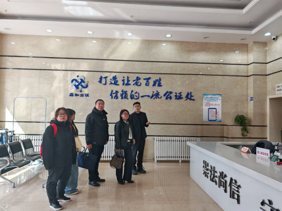 活动伊始,在工作人员的带领下,乌兰其其格书记一行先后参观了森和公证处的接待大厅、办证大厅、金融公证服务中心、不动产综合服务中心等功能区域,详细了解了公证处的机构设置、人员配置、业务范围及运营模式。布和主任结合公证处2000多平方米的办公场地布局,介绍了其配备的高档办公硬件设备和国内先进的办证业务系统,重点讲解了公证处在民事公证、商事公证、证据保全、遗嘱公证等领域的特色服务,以及全年无休的便民服务举措,让师生们直观感受到公证服务的专业化、规范化与便捷化。