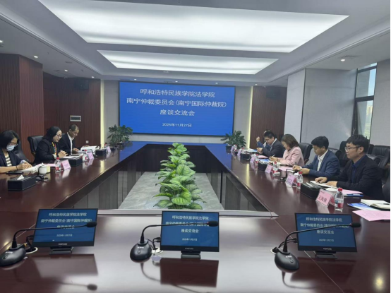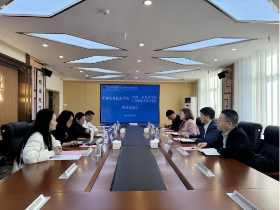 为顺利推进研究生招生与培养等工作,切实加强与兄弟民族院校的交流与合作,我院院长胡春香、副院长白木仁、朝克图教授及王海峰副教授一行4人于2025年11月27日赴广西民族大学法学院进行调研,广西民族大学法学院党委书记蒋慧,中国——东盟法学院执行院长、广西民族大学法学院院长陈星表示热烈欢迎。座谈会上,蒋慧表示双方具有很多相似的办学条件和发展目标,交流契合点多,都坚持以高质量法学教育服务地方法治建设,期待以此为基础,进一步强化区域协同与合作交流。