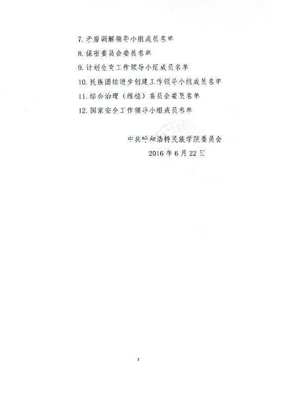 呼和浩特民族学院国家安全工作领导小组成员名单