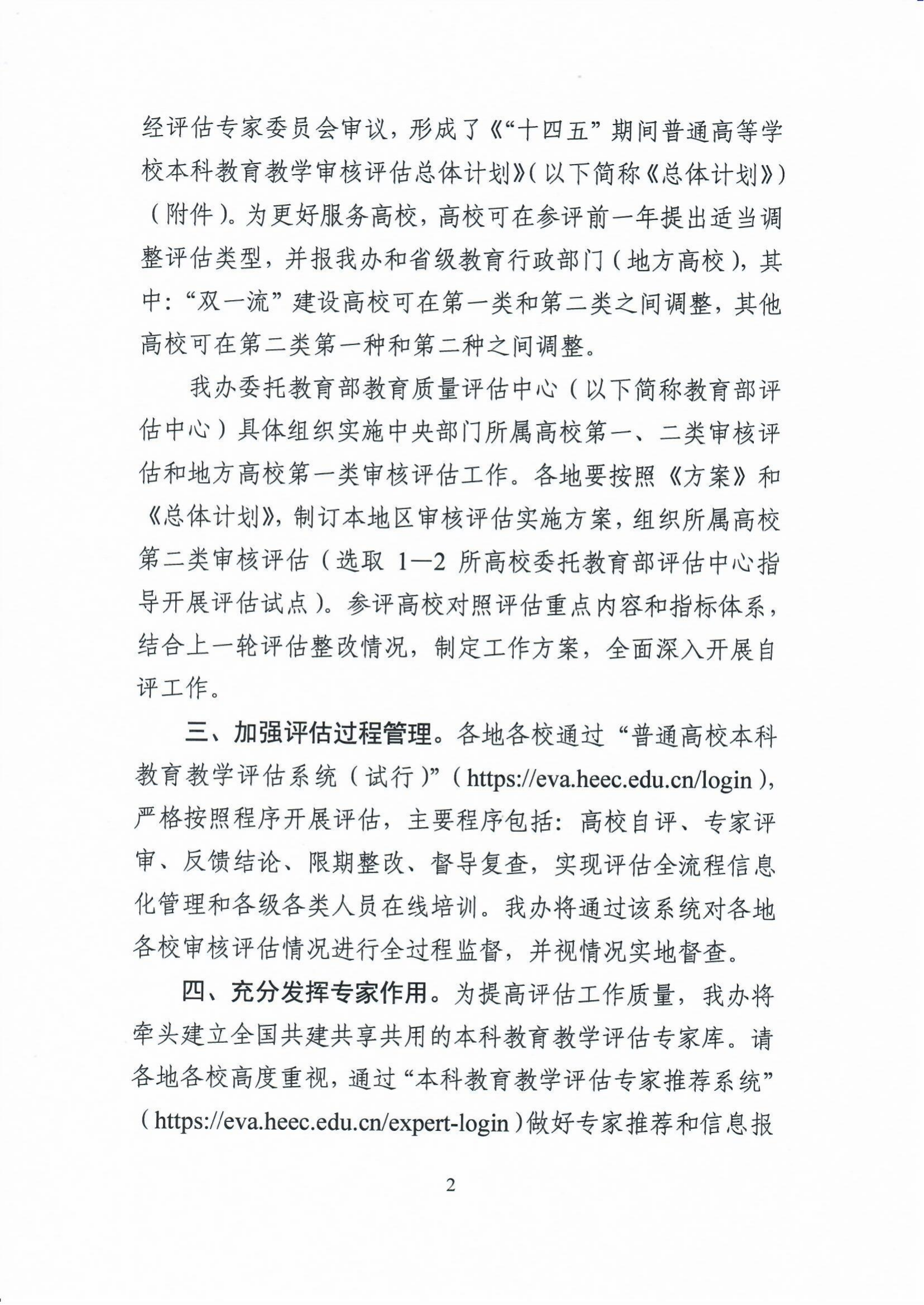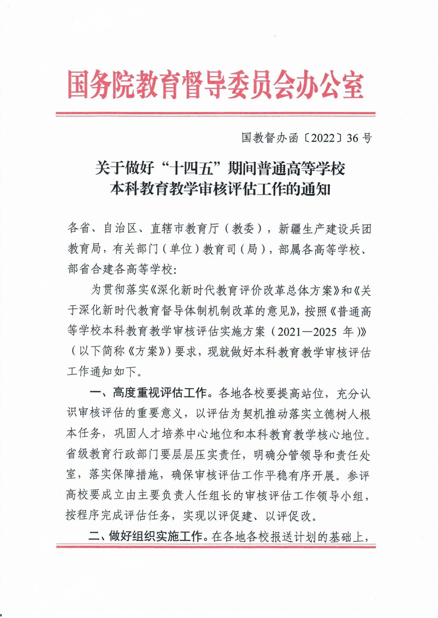 关于做好“十四五”期间普通高等学校本科教育教学审核评估工作的通知