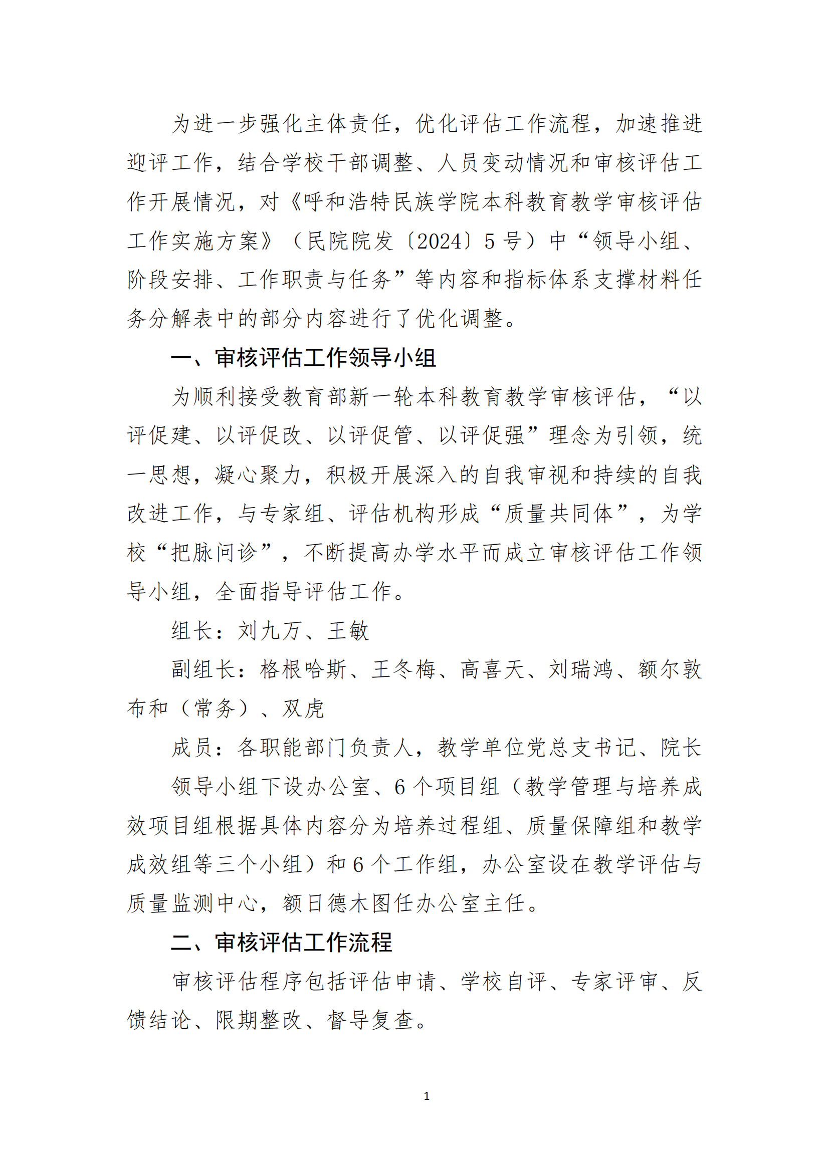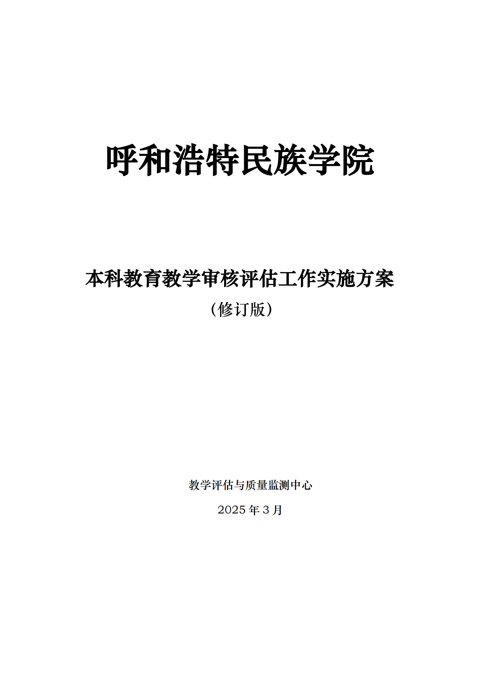 呼和浩特民族学院本科教育教学审核评估工作实施方案 (修订版)