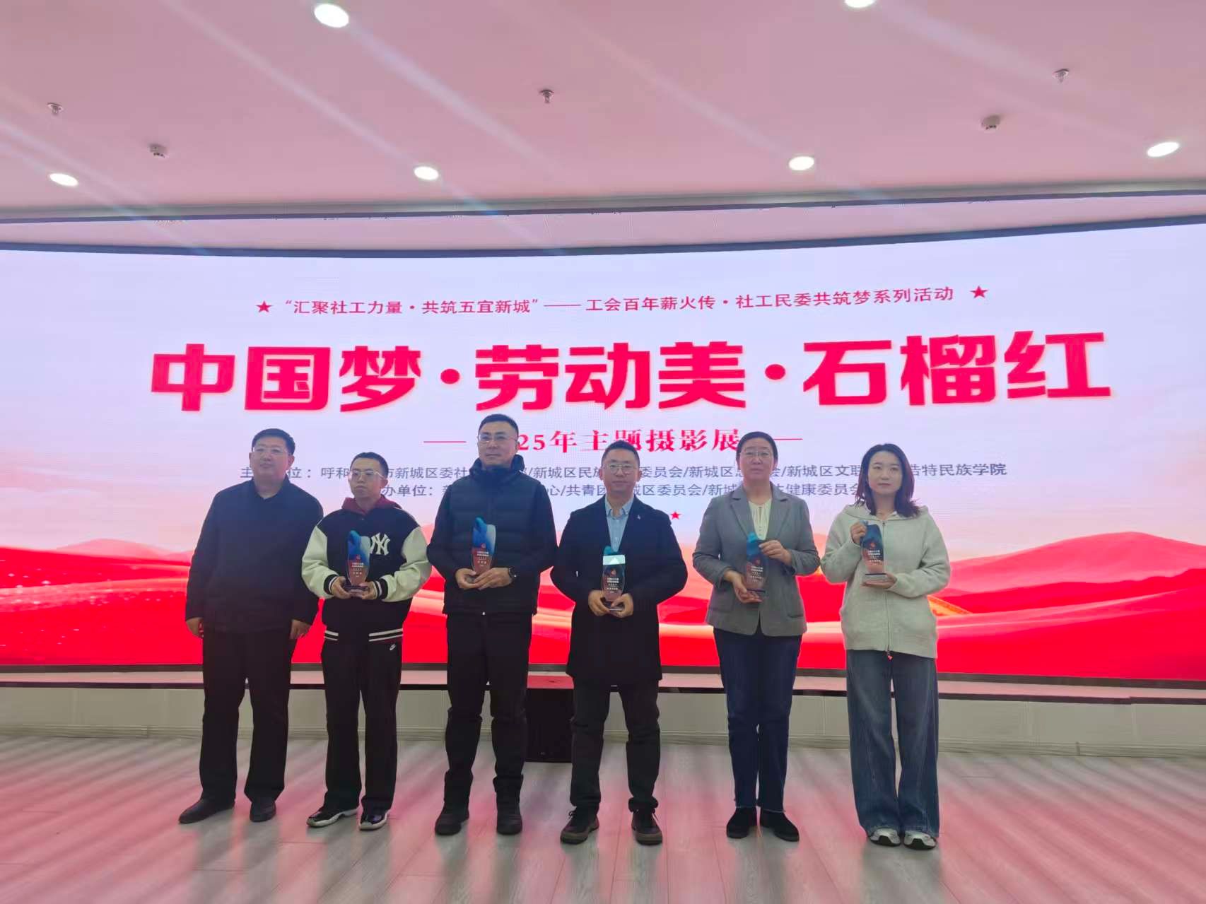 近日,由新城区委社会工作部等多家单位联合主办的“中国梦·劳动美・石榴红”主题摄影展正式在我校北区图书馆开展。我院学生党支部积极响应号召、踊跃投稿,选送的10幅摄影作品中,7幅成功入选并亮相展会,学院还获得“贡献奖”奖,充分展现了支部党员的责任担当与青春风采,彰显了学院在组织动员、凝聚青年力量方面的扎实成效。