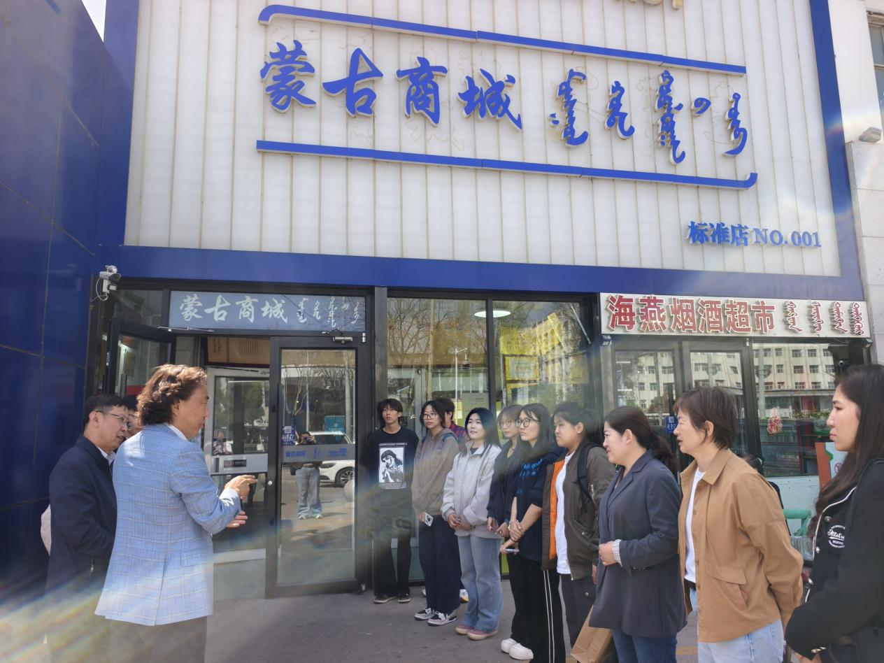蒙古商城总经理巴图毕力格总经理带领师生对蒙古商城的整体功能分区进行了细致参观,详细介绍了商城各区域的布局规划、业态分布等内容。师生们参观民族文化特色产品展销区,直观感受蒙古商城作为民族文化展示与商贸流通平台的独特魅力与运营实效。