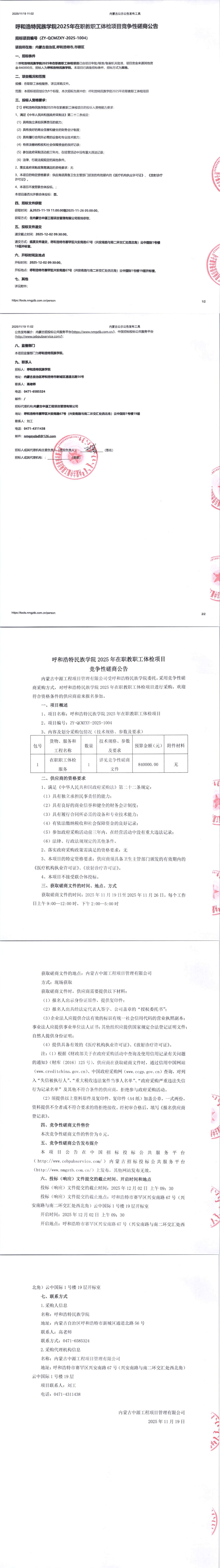 呼和浩特民族学院2025年在职教职工体检项目竞争性磋商公告