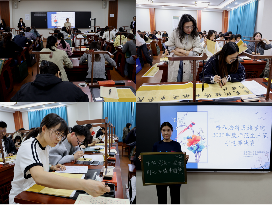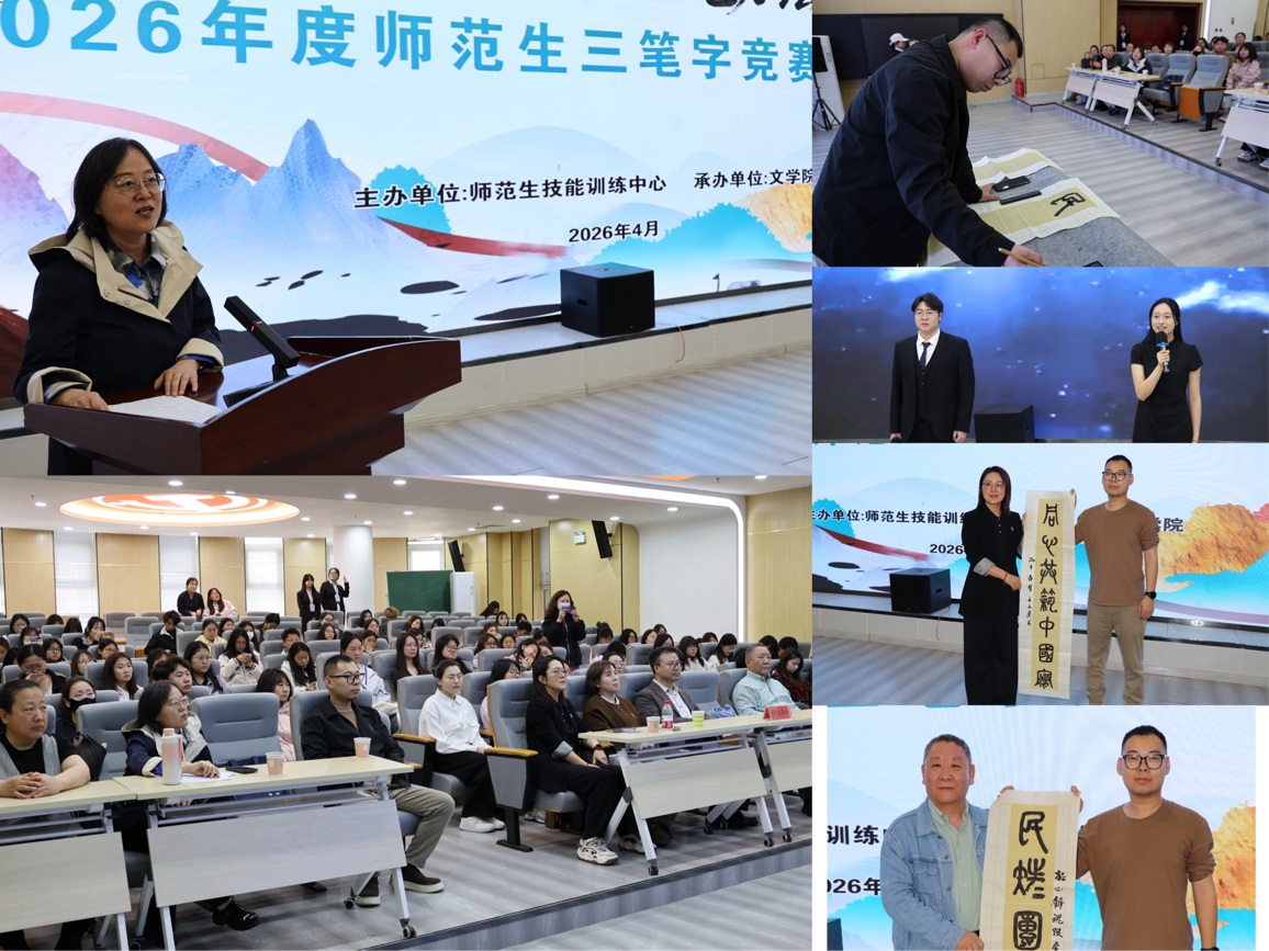 为夯实师范生教学基本功,传承中华优秀文化,4月9日,由师范生技能训练中心主办、文学院承办的“书写民族魂·笔力绘团结”2026年度师范生三笔字竞赛决赛如期举行。经过各师范专业初赛选拔,110名同学进入决赛,比赛设置钢笔字、粉笔字、毛笔字三项书写内容,同学们在一笔一画间尽显扎实的书写功底与良好的师范生精神风貌。优秀作品在尚智楼二楼大厅进行了集中展示。