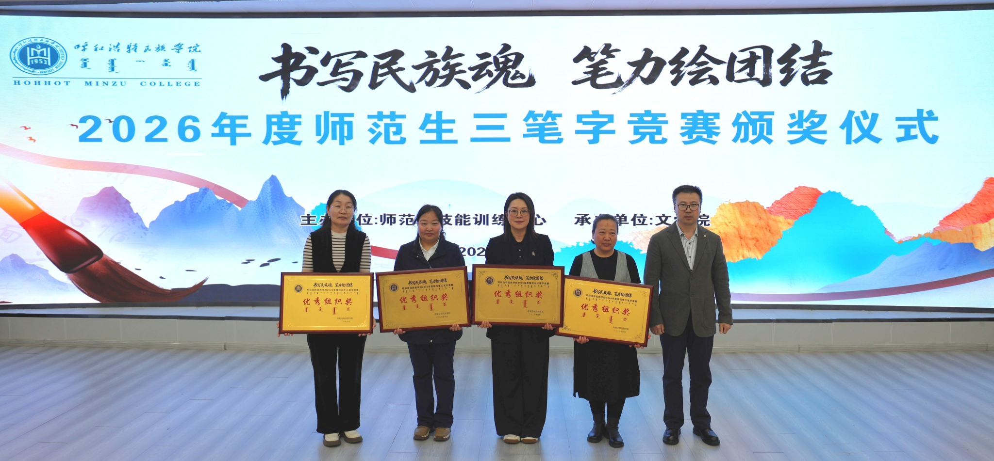 4月16日,颁奖仪式在铸牢中华民族共同体意识教育馆一楼报告厅举行。校党委委员、副校长额尔敦布和出席仪式并致辞。他指出,“三笔字”是师范生的核心教学技能,更是传承中华优秀传统文化、凝聚民族团结力量的重要载体,勉励同学们以赛促学、以学促练,不断夯实专业基础、锤炼过硬本领。美术与设计学院教师王天翼现场挥毫泼墨,为本次活动增添了浓厚的文化韵味。