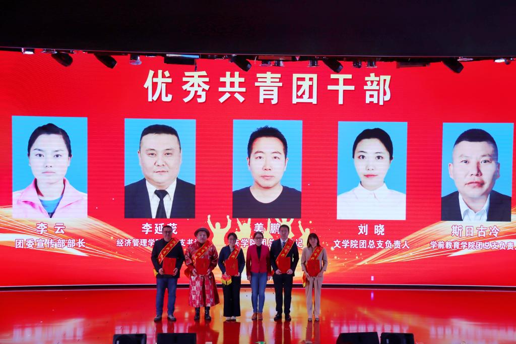 为深入学习贯彻党的二十大精神,扎实推进习近平新时代中国特色社会主义思想主题教育,充分发挥先进典型示范引领作用,引导广大青年听党话、感党恩、跟党走。5月4日下午,我校在图书馆二楼报告厅举行“感党恩 听党话 跟党走”主题团日活动暨2022—2023学年度“五•四”表彰大会。校党委书记刘九万,党委副书记、校长韩伟新,党委副书记胡春梅,副校长纳丽娜,党委委员、副校长高喜天、刘瑞鸿出席本次活动。各职能部门负责人,各学院党团总支书记、相关辅导员以及600余名团员青年代表参会。会议由校团委书记苏伦高娃主持。
